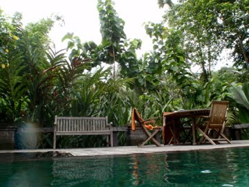 The raised stairs here lead to the hot tub that was never actually hot. It made a nice place for the kids to touch the bottom "with no holding", as e would tell me.